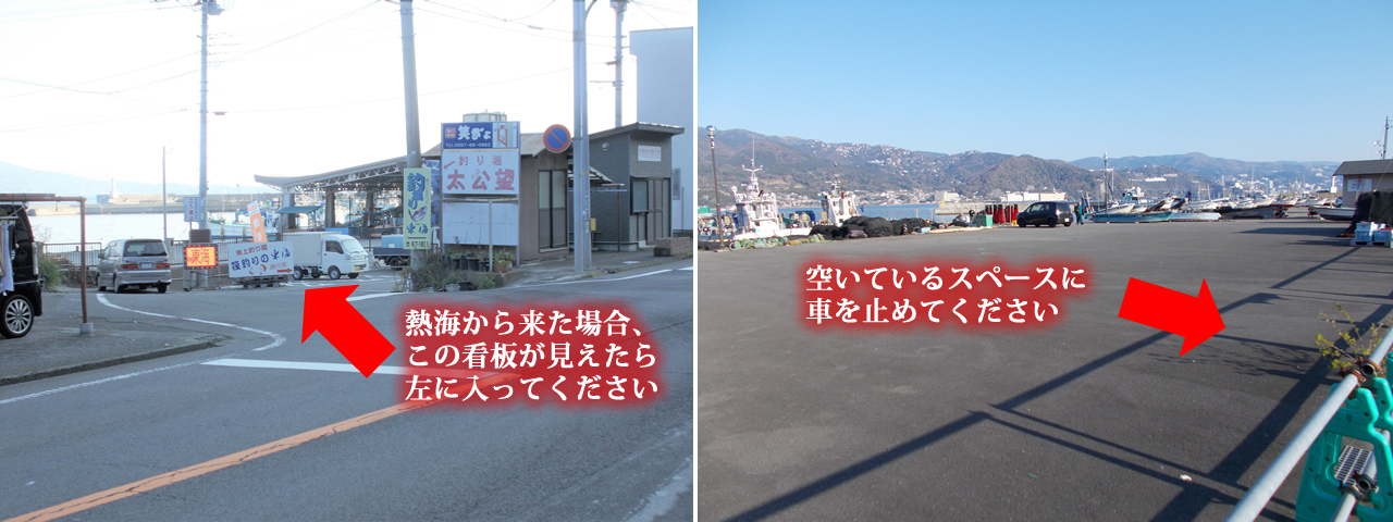 | 駐車場はありますか? | 網代漁港の駐車スペースをご利用いただきます。場所に関しましてはこのページの下部に記載しております。 |